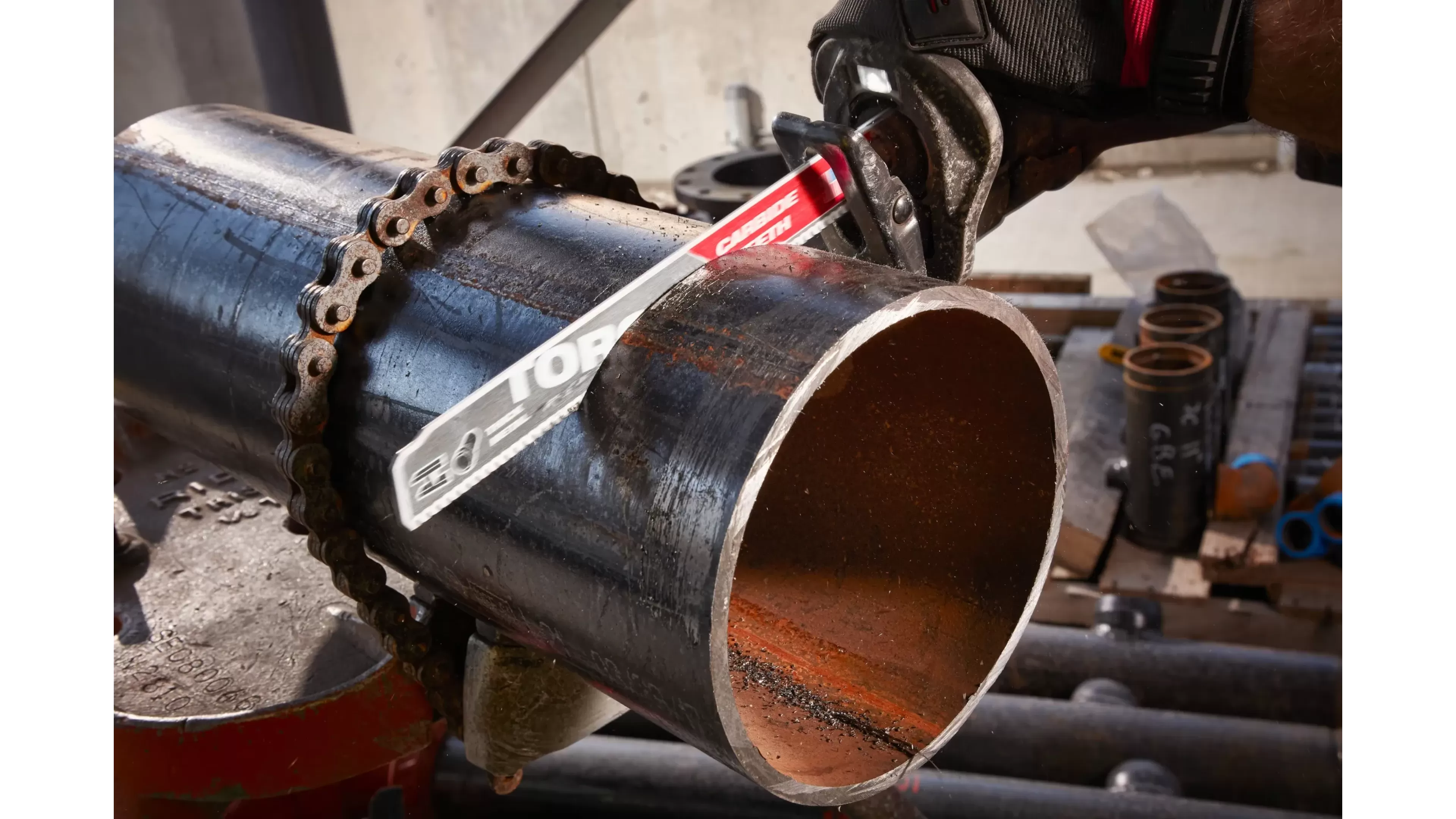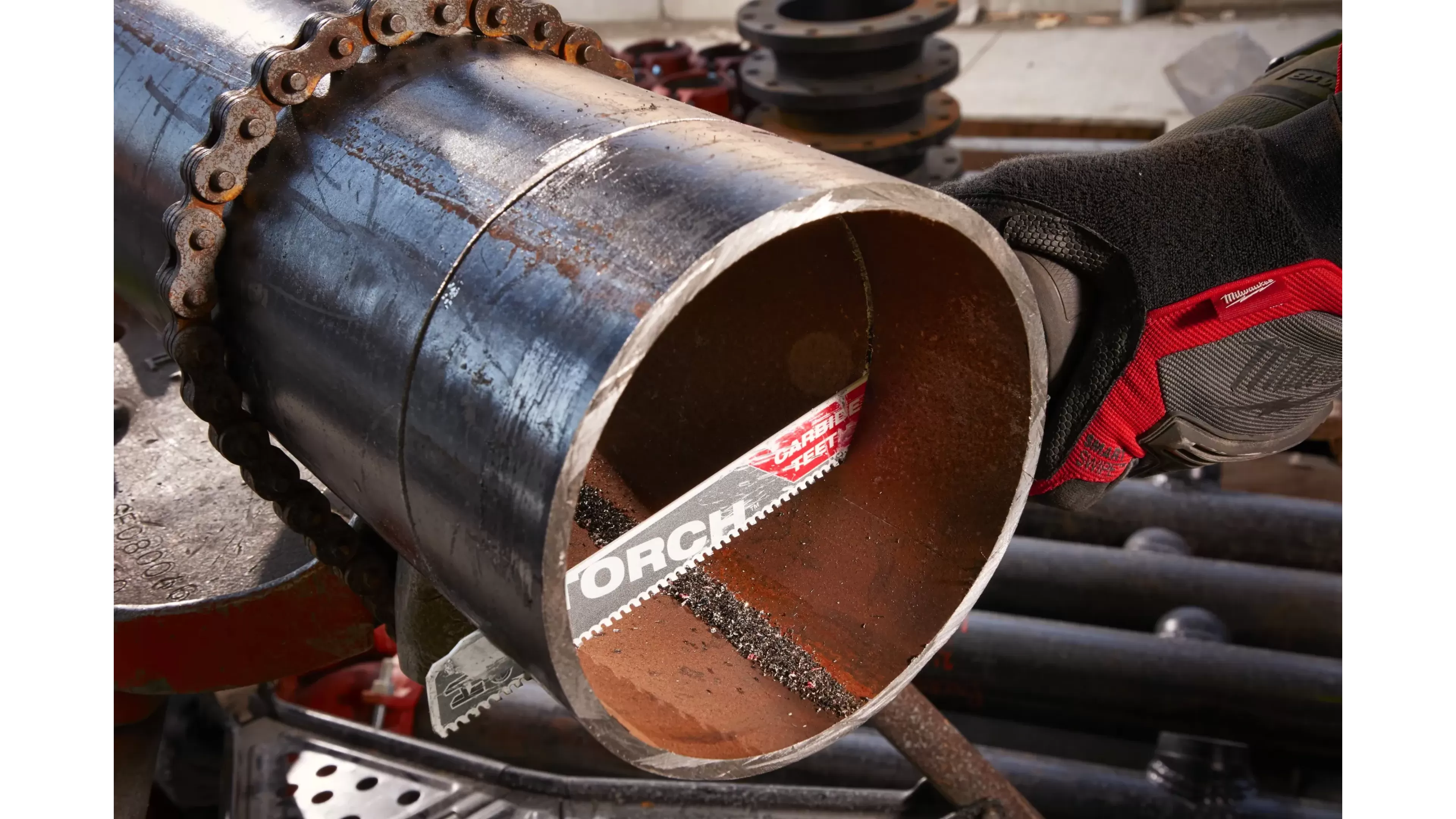 - Твердосплавные зубья обеспечивают непревзойденный ресурс в материалах большой толщины. Ресурс выше до 50 раз по сравнению с бимметаллическими полотнами THE TORCH
